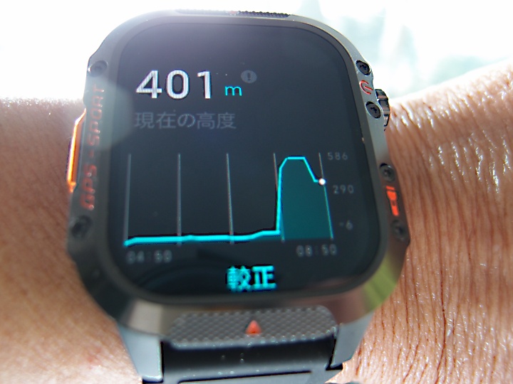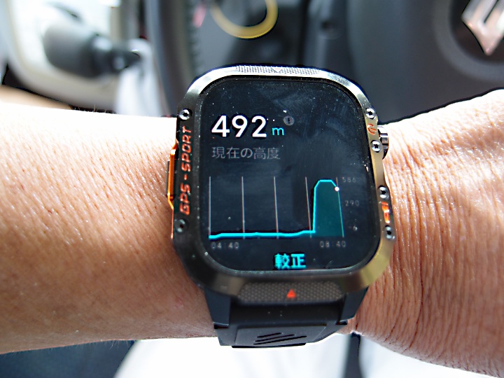 山の高度も調べたいので下の平地で、高度計をゼロに設定